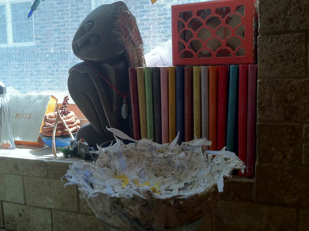 I knew I needed time with this project, so I planned it on a day when Mina was with her father. She didn’t need to see me as an emotional wreck. I cried and screamed while I stirred my flour paste on the stove. I released and let go as I worked with the shredded paper and paste. I was going to make my equivalent of the Japanese begging bowl, Oryoki. It means “just enough.” Each person has just enough in her life or “bowl”, metaphorically speaking. For whatever is put into your bowl, good and bad, you should say thank you because it was what you need at that moment to grow into a better you.