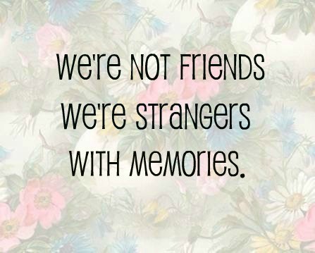 Wow! It made me sad to have someone [a picture quote] kind of put me in my place. Don’t get me wrong, I can honestly look at the progression of a failed relationship: Fall in love, stay together, people change, fall out of love, separate. In essence, each person has become strangers to each other, but there are memories that hold a space between them.