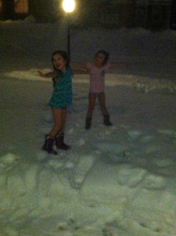 The snow fell quietly and sparkled under the street lamps. The girls could not resist a romp in the snow….in their underwear! Simplistically adorned with boots, panties, and t-shirts, they jumped and stomped through the falling snowflakes and thought it was fantastic!